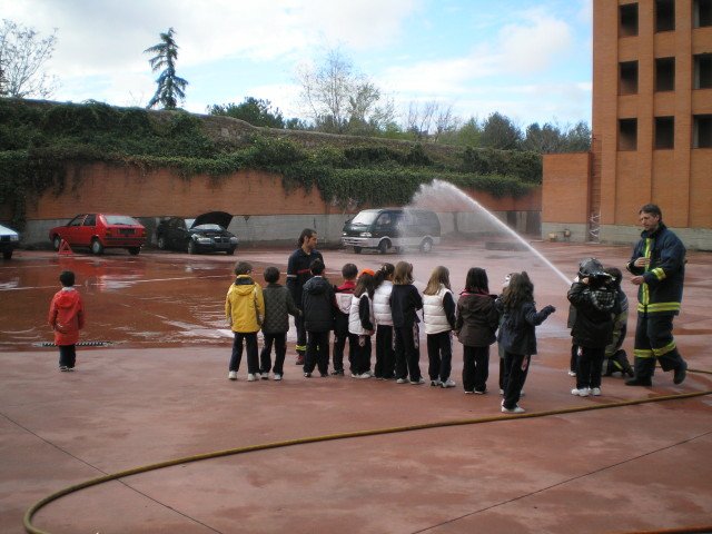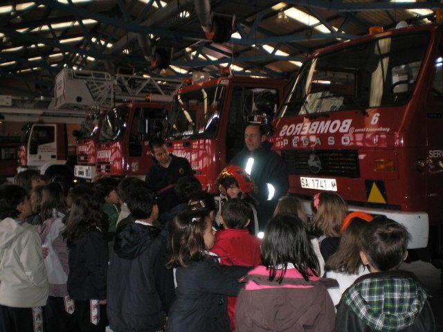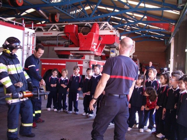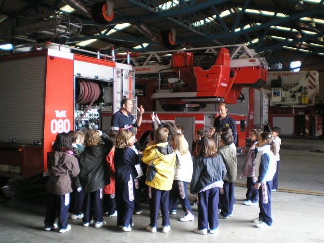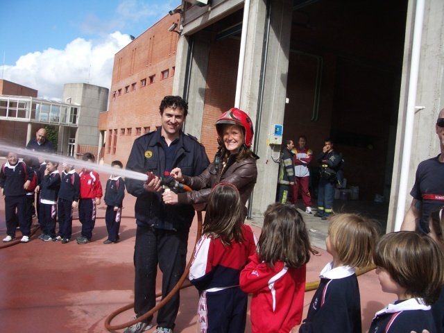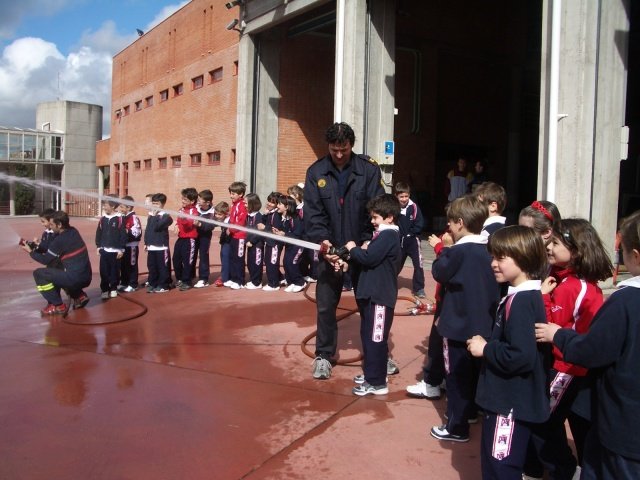 Los alumnos de 1º de Primaria fueron en autobús a visitar El Parque Municipal de Bomberos. A nuestra llegada nos enseñaron las instalaciones y todos los materiales que utilizan para su trabajo (camiones, coches, escaleras, mangueras, trajes especiales, etc.). Una de las cosas que más les gustaron fue la participación en la utilización de las mangueras y subir a los camiones.