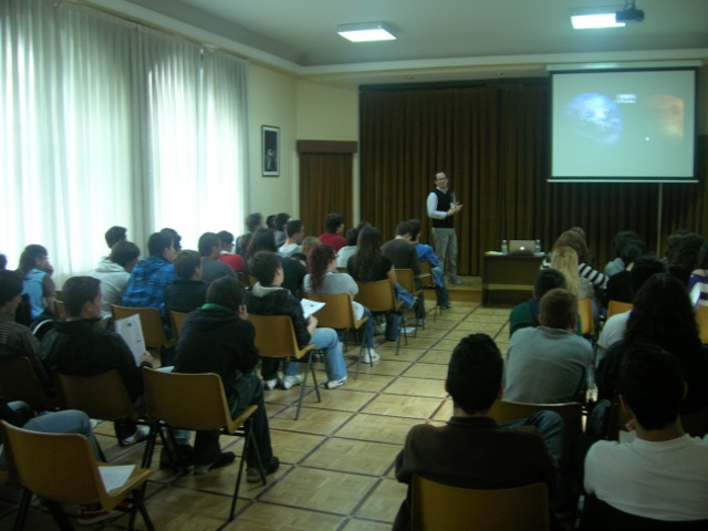El pasado 16 de abril los alumnos de ciencias de 4º de ESO y de 2º de bachillerato asistieron en el colegio a una conferencia titulada: “ El Universo: un viaje a través de las estrellas”. Dicha conferencia fue impartida por Alberto Molino, un estudiante doctoral del IAA-CSIC (Instituto de Astrofísica de Andalucía – Consejo Superior de Investigaciones Científicas). En dicha conferencia pudieron aprender y ver cómo es nuestro Sistema Solar, nuestra galaxia y cómo se puede estudiar y analizar. Se proyectaron varios vídeos que les ayudaron a comprender las enormes distancias y tamaños de los objetos que vemos en el cielo.