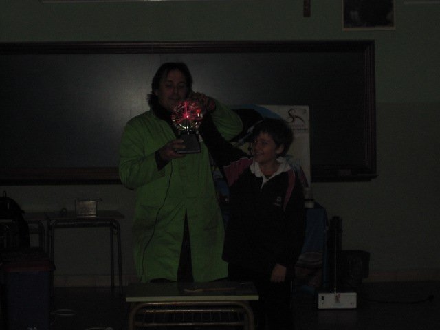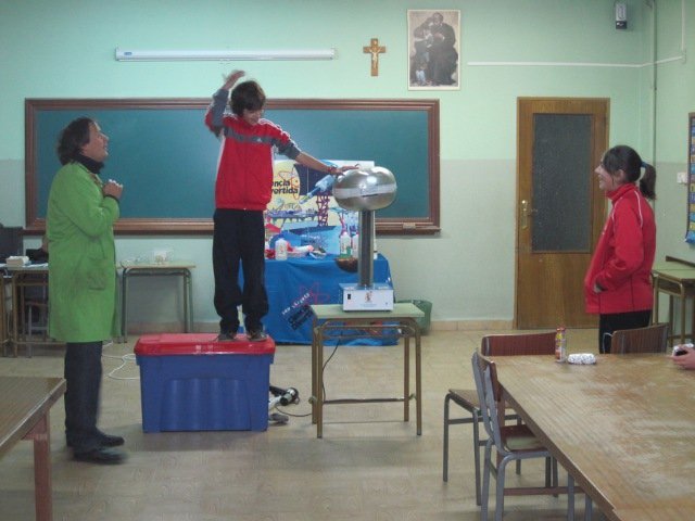 una lámpara de plasma, con forma esférica y unos “rayos de luz” en su interior, nos permitieron descubrir la capacidad que tiene nuestro cuerpo para atraer la electricidad, aunque lo más divertido fue ver cómo a algún compañero se le ponían literalmente los pelos de punta al experimentar con la energía electrostática.