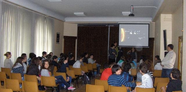 A los segundos, les explicó la física básica de algunos fenómenos que ocurren en el Sol, las estrellas y en el desplazamiento de los cuerpos celestes. También les dio información de primera mano acerca de los distintos caminos que pueden seguir a partir de ahora si se quieren dedicar a la investigación.