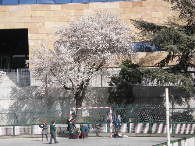 El almendro del colegio es un recurso impagable que nos ofrece la naturaleza a profesores y alumnos.