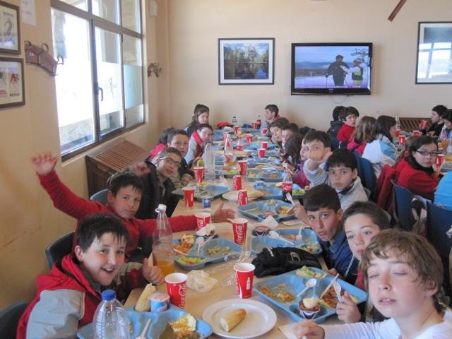 Los profesores acompañantes fuimos Iban, Rosa, Teresa y Aurelio, dos de los cuales accedimos a las pistas mientras que los otros dos se quedaron en el área de cafetería, para tener en todo momento controlados a los niños, tanto dentro como fuera del “dominio esquiable”.