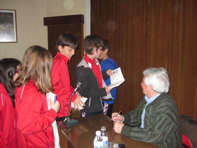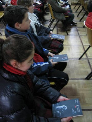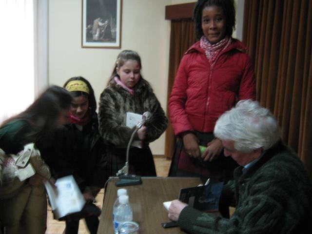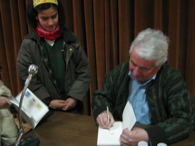 El autor atendió pacientemente a todas las preguntas que quisieron hacer nuestros alumnos y después firmó todos los ejemplares.