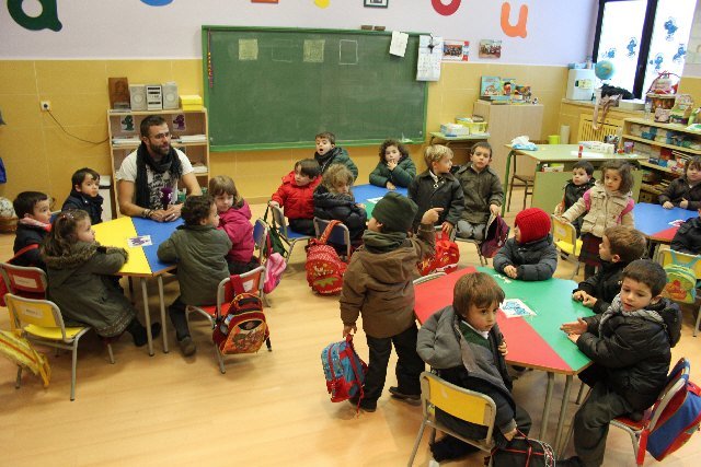 No hace tantos años que Antonio Jimeno corría por los patios del Colegio Calasanz. Ayer, volvió a vivir esa experiencia, pero con otros compañeros, con los niños de segundo y tercero de infantil y con los niños de primero y segundo de primaria.