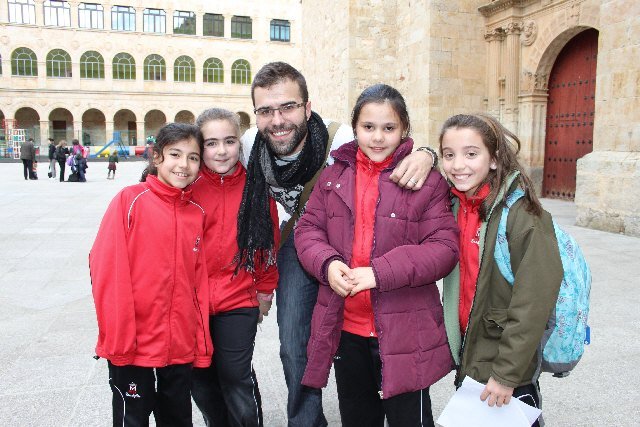 Ha sido una visita breve pero muy emocionante, tanto para Jimeno como para los chicos. Ha habido tiempo para todo, para preguntas, para respuestas; para fotos y más fotos; para cantar a coro el himno del Colegio; para el reencuentro de Jimeno con antiguas profesoras y con su clase de párvulos.