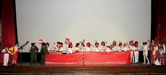 Los alumnos de Jardín de Infancia, Infantil y Primaria despidieron el Primer Trimestre con una actuación. Arropados por sus padres y familiares todos los niños desfilaron por el escenario del Salón de Actos.
