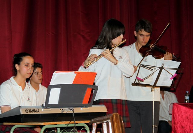 El acto comenzó con una Eucaristía en la Iglesia del Colegio. En el salón de actos nuestros alumnos dieron unas pinceladas sobre su vida en el centro, leyeron algunos poemas, se realizó la proyección de un video en el que participaban todos ellos. Alumnos de Secundaria acompañaron el acto tocando diferentes instrumentos.