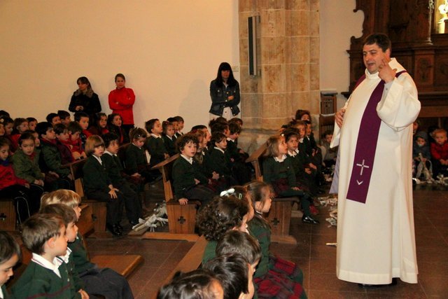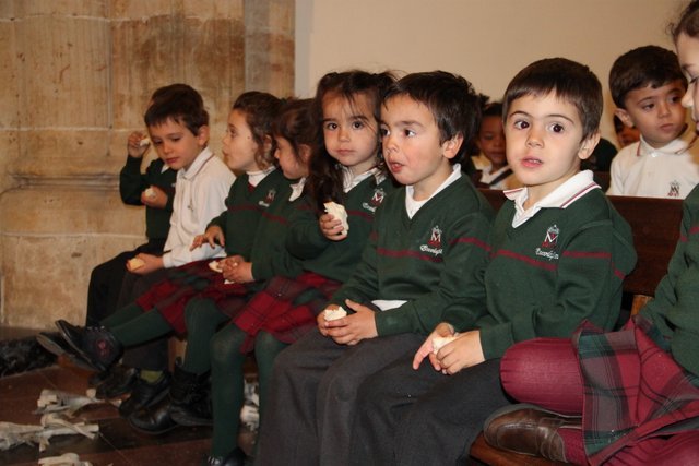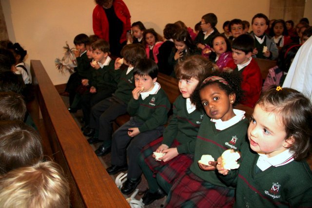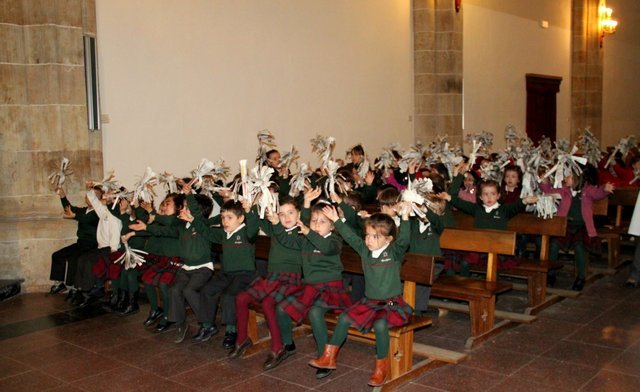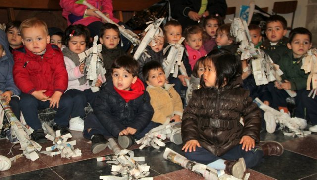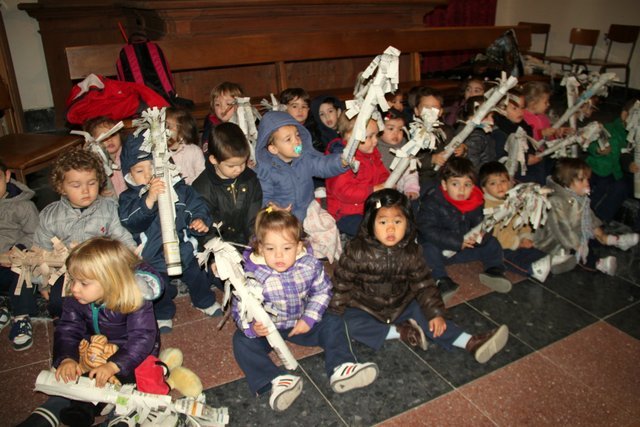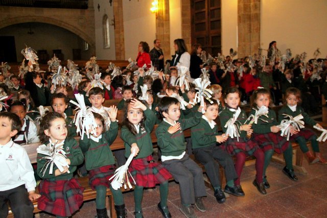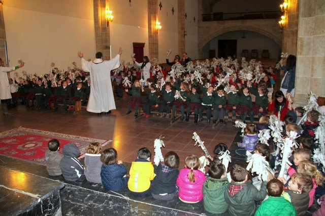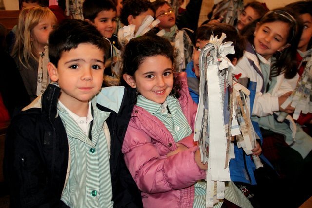 Ya llega la Pascua y los niños de Infantil y Jardín de Infancia lo hemos celebrado esta mañana en la Iglesia, todos llevábamos unas palmas de papel hechas en clase.