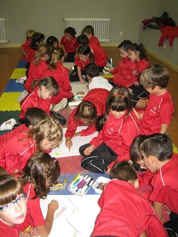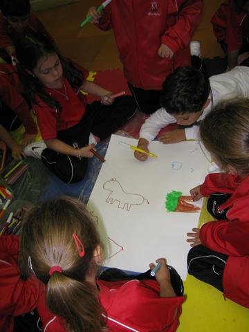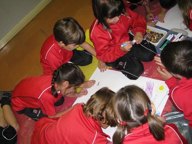 Por último ellos se convirtieron en pintores realizando un cuadro por grupos que después se llevó a la clase  dónde ha quedado expuesto para recordar esta salida tan agradable y educativa.