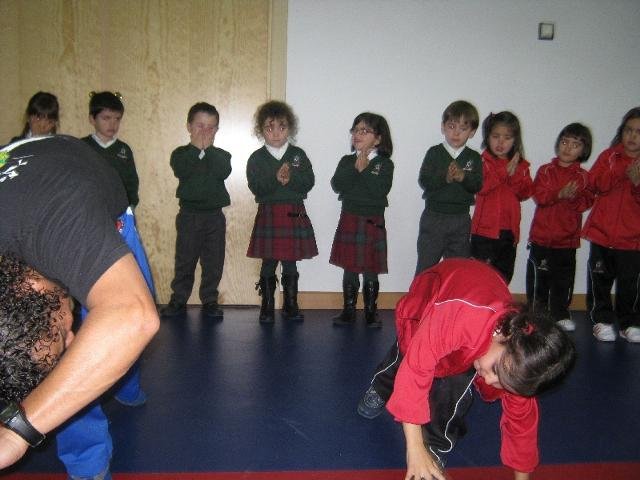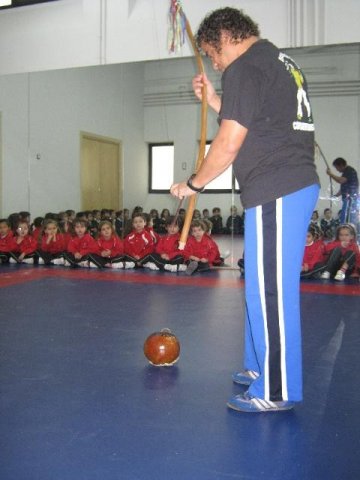 Los niños y niñas de 2º de Infantil hemos pasado una divertida y didáctica tarde con Tartaruga (profesor de Santiago I), en la que aprendimos sencillos ritmos y pasos de capoeira. También conocimos instrumentos hechos con útiles rudimentarios y semillas de Brasil. Gracias Tartaruga.