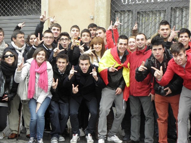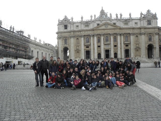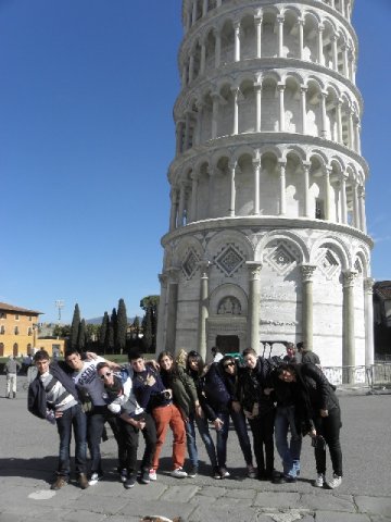 Cincuenta y un alumnos de 2º de bachillerato disfrutaron de un viaje de fin de curso por el norte de Italia acompañados de cuatro profesores: José Antonio Valverde, Ángel Barrios, Mª Jesús Gómez y Magdalena Garzón. El itinerario permitió visitar la Roma de los Césares (columna de Trajano, Panteón de M. Agrippa, foros imperiales…) la Roma barroca (Fontana de Trevi, S. Luis de los franceses, Piazza Navona…) la Roma del Renacimiento (El Vaticano, el Moisés de Miguel Ángel…); en Pisa subimos inclinados a su torre; recorrimos las calles de S.Giminniano, de Siena, de Florencia, donde a pesar del frío de muerte disfrutamos con la magnificencia de la catedral, con el ascenso a la cúpula y con la vista de la ciudad desde S. Miniato.