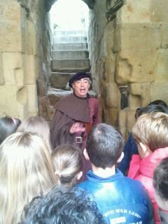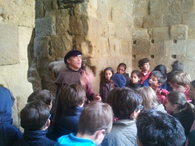 Al llegar a la Plaza de Carvajal, lugar donde habíamos quedado, nos recibió un hombre vestido de caballero noble del siglo XV. Nos invitó a sentarnos alrededor suyo y nos contó lo que íbamos a ver y a aprender.