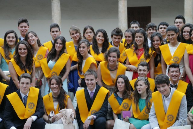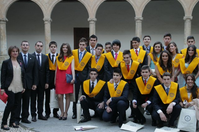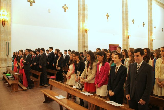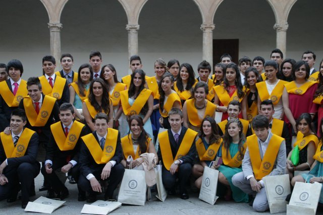 Muchos profesores también quisieron estar presentes en este día, el acto comenzó con una Eucaristía en la Iglesia del Colegio. En el Salón de Actos tuvo lugar el discurso y la imposición de bandas, y para finalizar con el ágape en el Patio del Pino.
