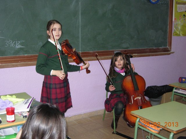 Today, our classmates, Maria and Claudia brought their musical instruments to school. Maria plays the viola and Claudia plays the cello. They played their instruments and explai...
