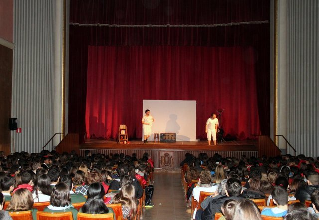 Don Quijote de la Mancha y Sancho Panza han visitado el salón de actos del Colegio. Encarnados por Antonio Velasco y Fernando D. Retes, componentes de la compañía Claussic Teatr...