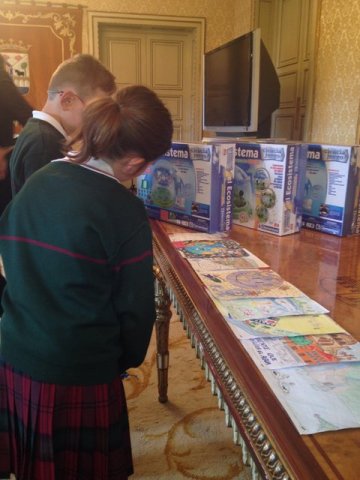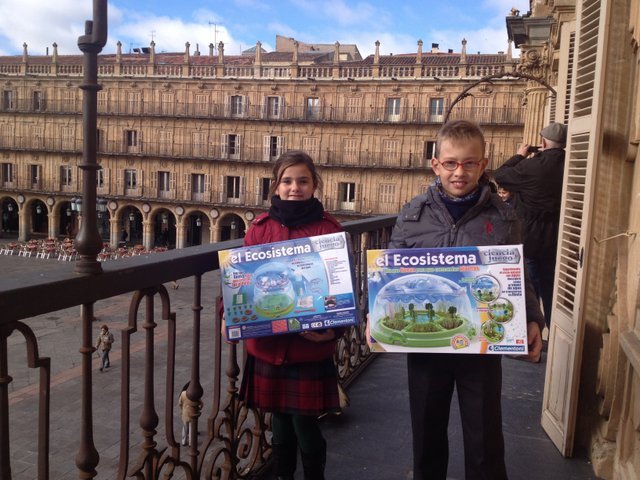 Fueron recibidos por el concejal de Medio Ambiente del Excmo. Ayuntamiento de Salamanca, Emilio Arroita y por Ángel Capellán, gerente de Aqualia que les hicieron entrega del juego “Ecosistema”, con el que pueden analizar la calidad del agua, cultivar plantas, experimentar con el ciclo del agua y hasta generar lluvia.