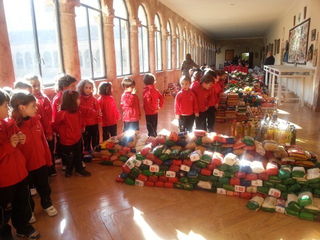Los niños y niñas de Infantil hemos visitado el claustro del colegio, que por unos días se ha convertido en almacén de la recogida de alimentos para la operación kilo y de juguetes.