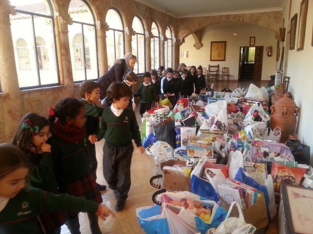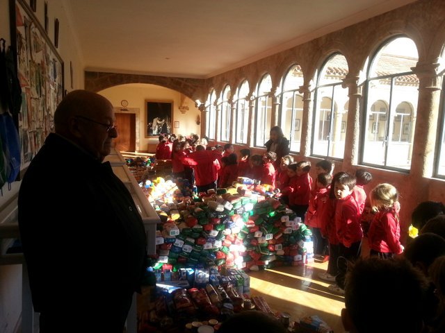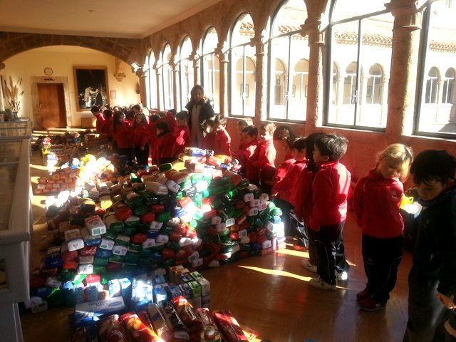 Al llegar al claustro nos hemos sorprendido de la cantidad de comida y juguetes que había, por eso hemos vuelto a las clases muy contentos de haber podido colaborar en una labor tan importante.
