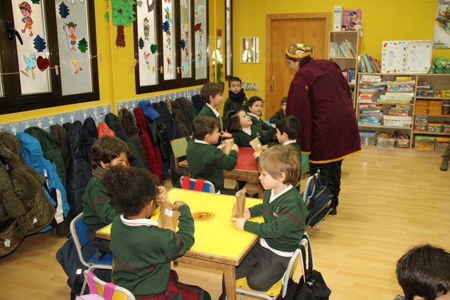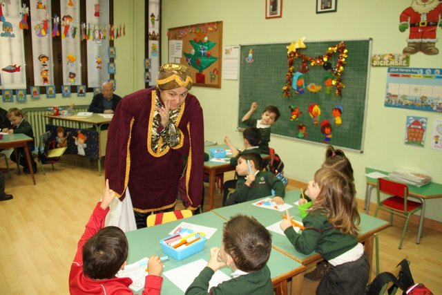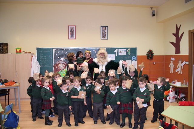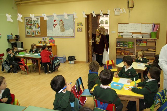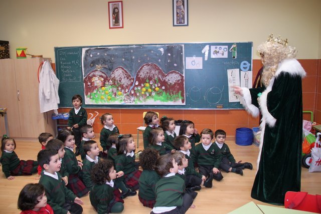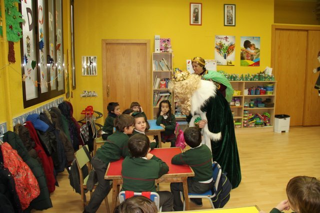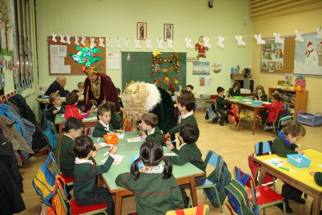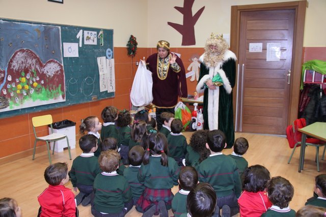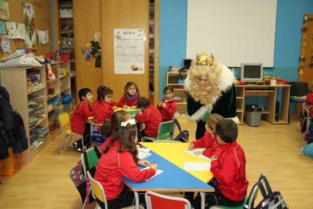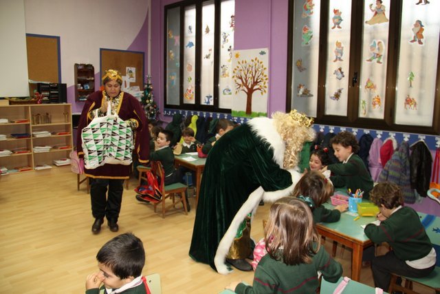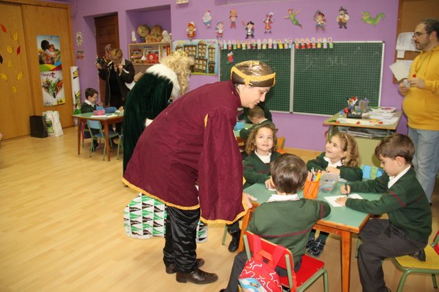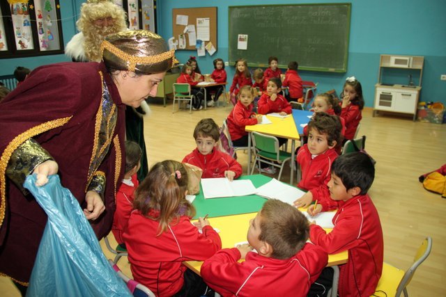 El Rey Melchor y uno de sus Pajes han visitado a los alumnos de Jardín Infancia e Infantil. Aula por aula han estado saludando a todos los niños y les han anticipado un regalito. Los niños han aprovechado para darle personalmente unos dibujos, y como no, la carta donde piden sus regalos.
