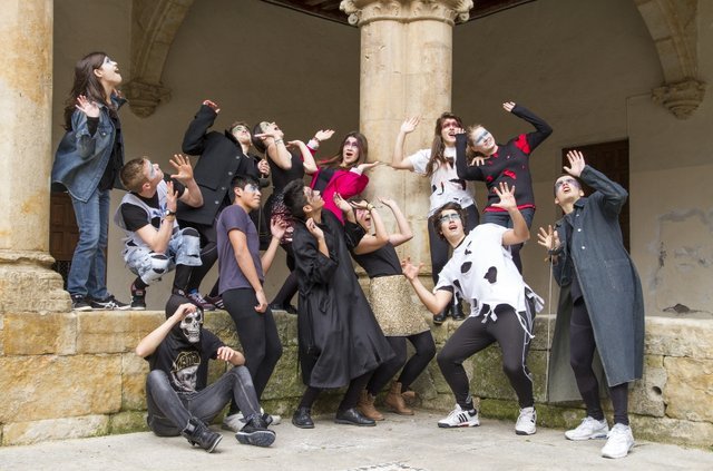 el magnífico telón de fondo que es nuestro claustro y posamos tal y como lo