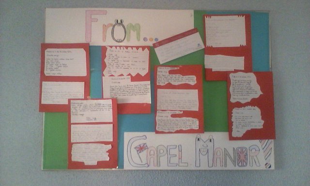 cartas, mensajes y trabajos sobre las culturas españolas e inglesas con niños y