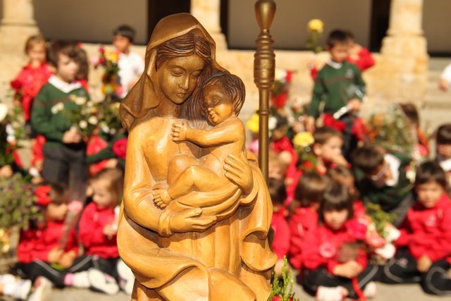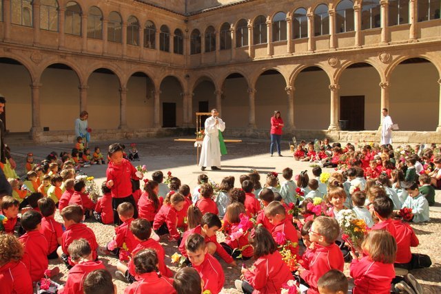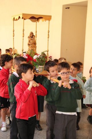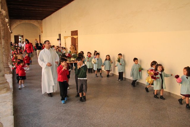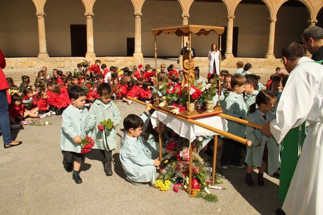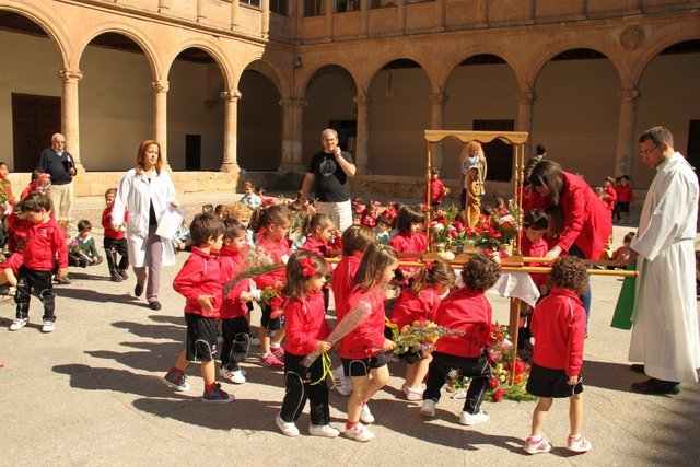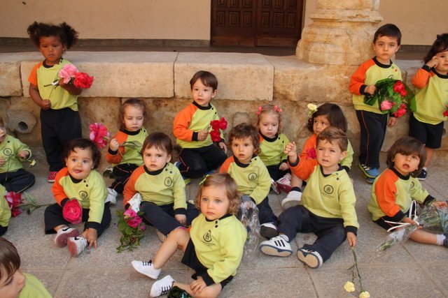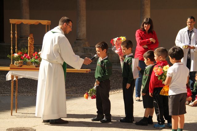 Termina Mayo, y los niños de infantil del colegio decoran el patio con flores, dedicadas a nuestra Madre la Virgen María. Después de una emotiva procesión, los cantos a la Virgen llenaron el patio de alegría.