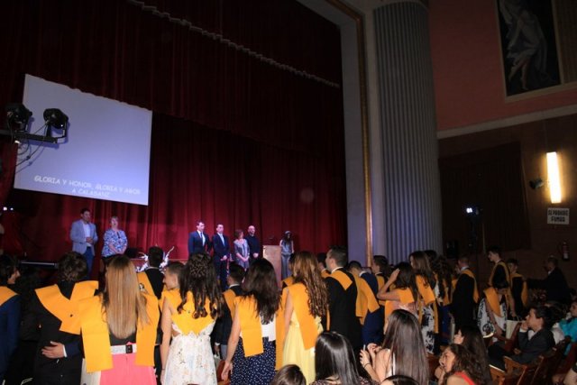 Los alumnos de 2º Bachillerato han celebrado su graduación. El acto comenzaba con una Eucaristía en la iglesia del centro, después en el teatro, entre nervios y emoción han recordado todo lo vivido a lo largo de estos años en el Colegio Calasanz, también se ha llevado a cabo la imposición de bandas por parte de los tutores.