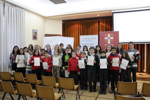 Los representantes de Cambridge English Language Assessment de Salamanca asisten a la Primera Ceremonia de Entrega de Certificados en el Colegio Calasanz. Entregaron personalment...