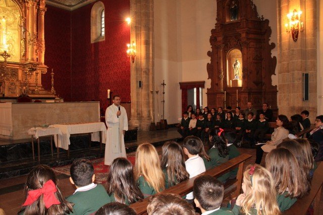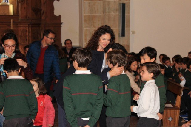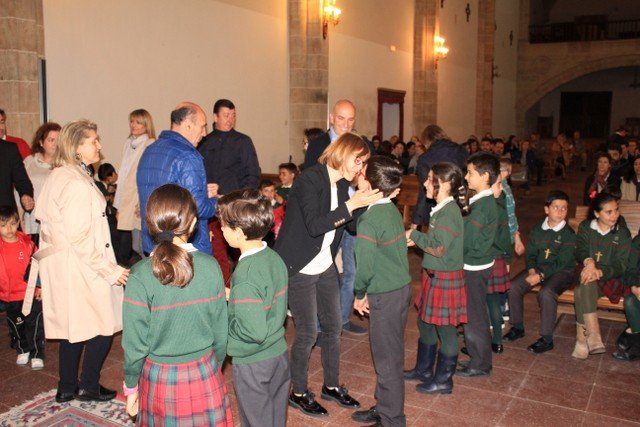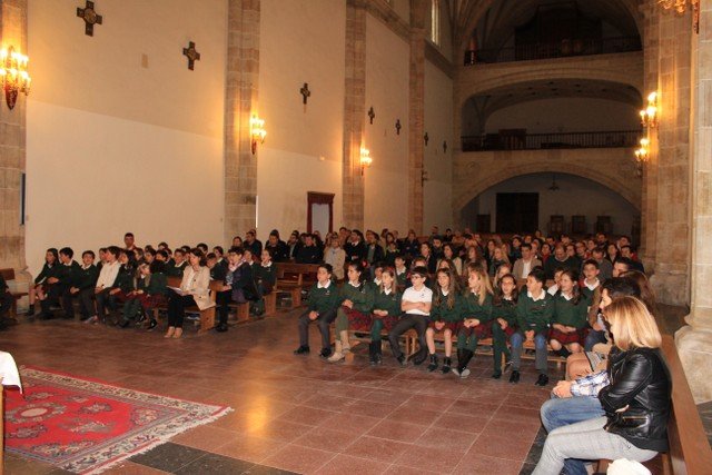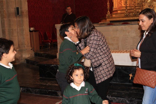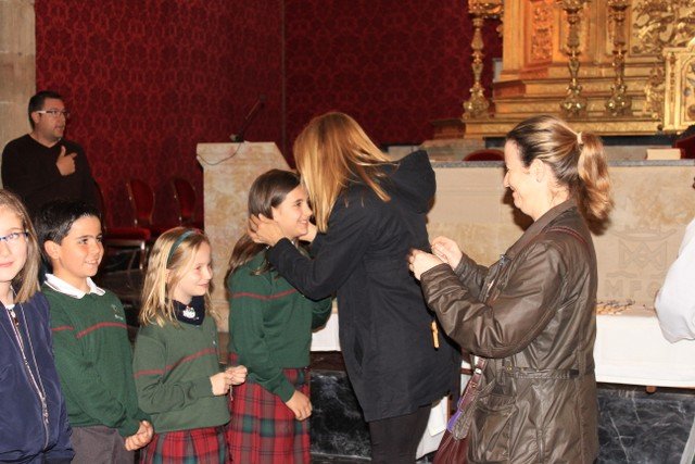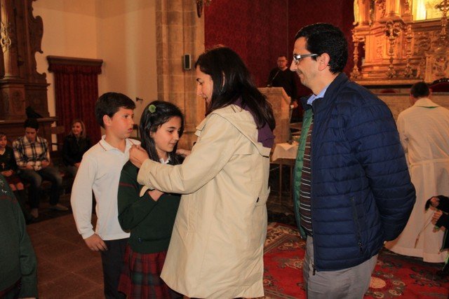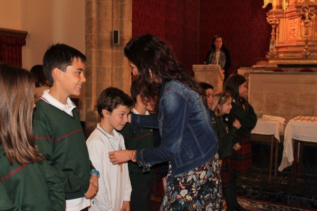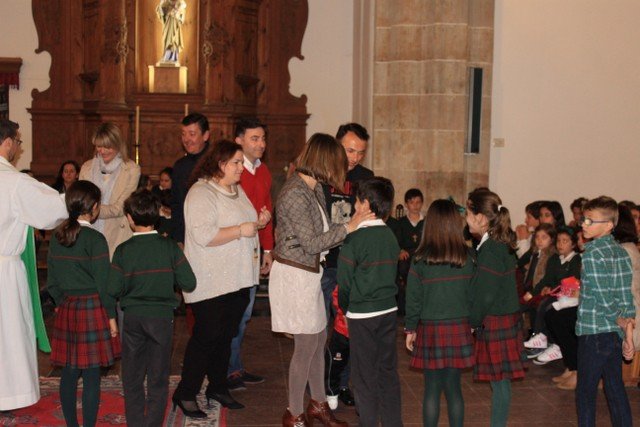 Los alumnos de 4º de primaria del Colegio Calasanz han participado en una ceremonia religiosa, acompañados de sus familiares y catequistas. A finales de este mes estos chicos recibirán el Sacramento de la Primera Comunión. Ayer por la tarde tuvo lugar la renovación de las promesas del Bautismo y también la entrega de la Cruz, cada niño la recibió de manos de un familiar.