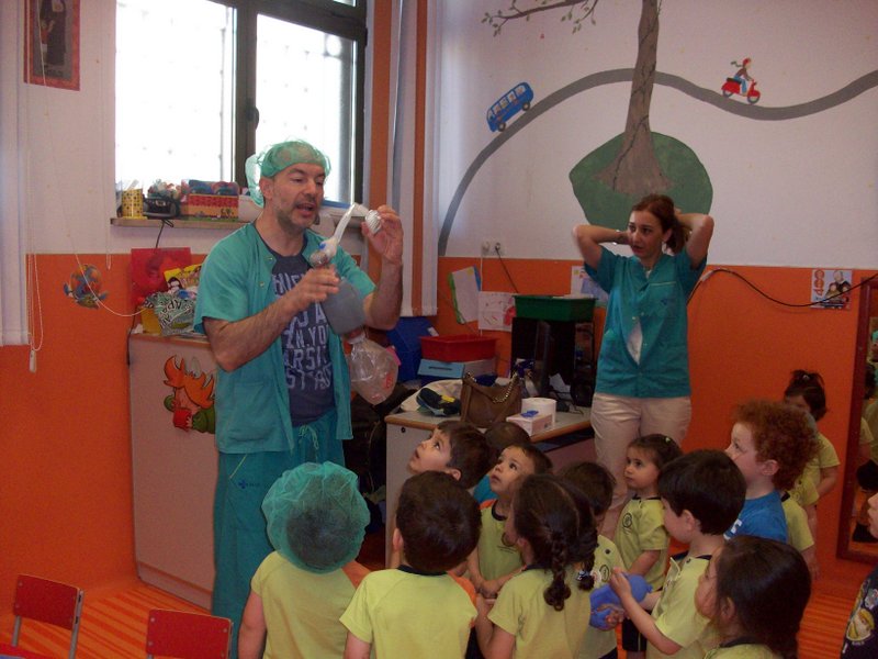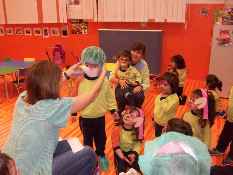 En estos talleres, desarrollados por familias del colegio, nos han enseñado el trabajo que realizan los médicos, enfermeras y anestesistas. Nos han contado lo que hace una esteticista y nos han pintado la cara de la patrulla canina. Experimentamos con hielo seco y pudimos tocar un volcán de burbujas. Aprendimos lo que hace un carnicero e incluso como se visten las charras y como suena la música de Salamanca.