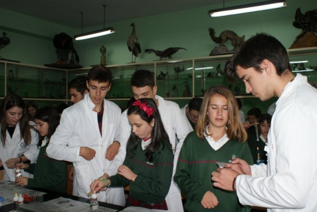 Los alumnos de 6º de Primaria comparten prácticas de laboratorio con los alumnos de 2º Bachillerato