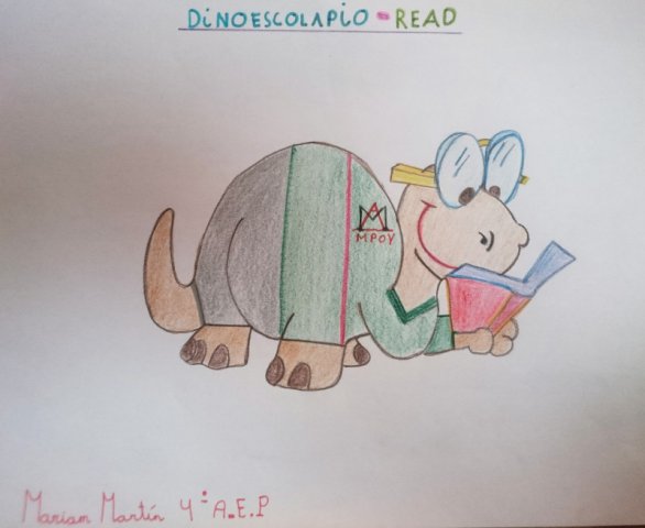 El nombre de la mascota es DINOLAPIO-READ y es el dibujo que aparece en la parte superior.