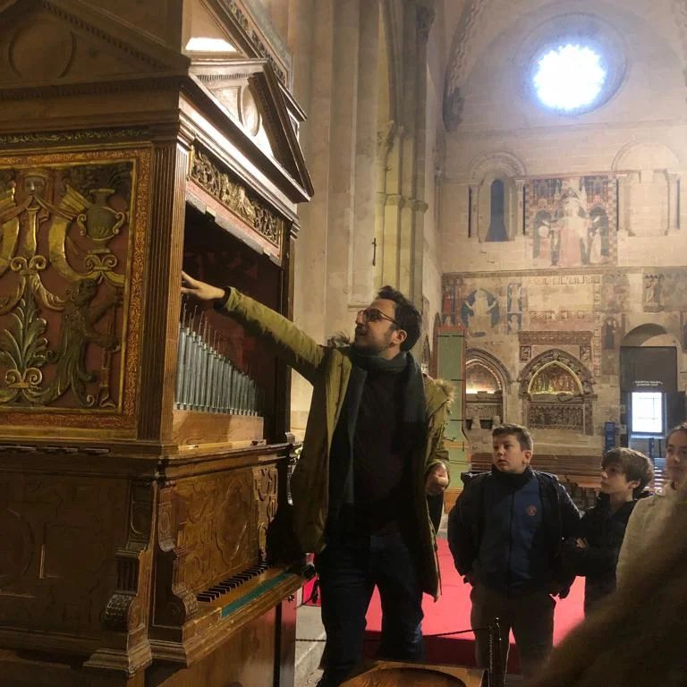 Así, los alumnos/as han comprendido el funcionamiento y sonoridad de los órganos y otros instrumentos. Han podido conocer el mobiliario al servicio de la música, tal y como puede apreciarse en el coro de la Catedral Nueva, o la iconografía musical como fuente de aprendizaje y enriquecimiento cultural.