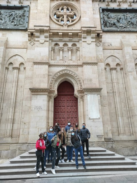 Para completar lo que han estudiado en clase sobre la arquitectura de los siglos XIX y XX, los alumnos de 4º D ESO recorrieron las calles del centro de la ciudad para descubrir y clasificar los edificios neoclásicos, historicistas y arquitectura de la revolución industrial. El palacio de Anaya, la Casa de las Tres Culturas, la iglesia de San Juan de Sahagún, varias viviendas neogóticas y el Mercado Central de Abastos fueron los puntos de destino. En estos lugares repasaron las características generales de cada estilo e hicieron unas cuantas fotos que les vendrán muy bien para ilustrar los trabajos de la asignatura