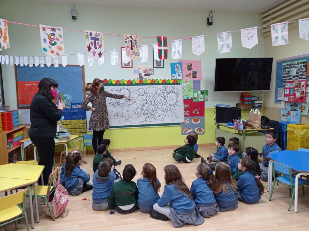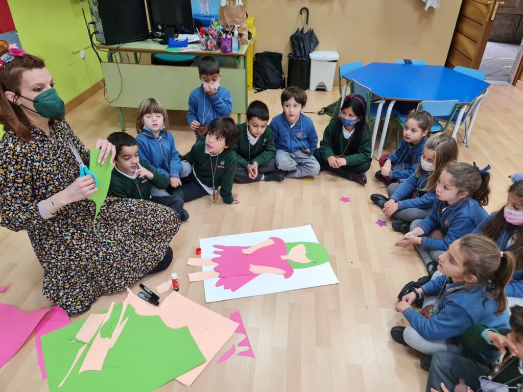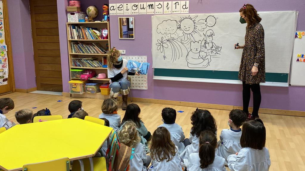 La ilustradora Blanca Lorena Llorens ha llenado las clases de 3º infantil de duendes, hadas y de pequeños animalillos que están tristes bajo un cielo gris.