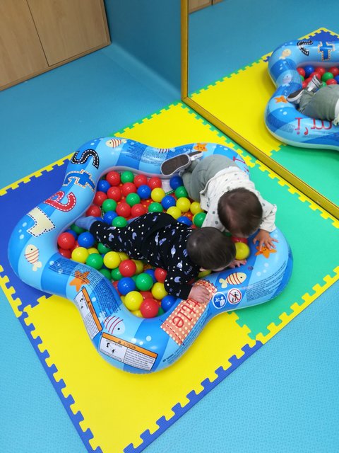 Entre canción y canción, y gateo a gateo, alguno ha aprovechado para lanzarse a la piscina y trabajar la estimulación temprana.