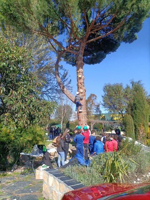 A las 9 de la mañana salieron andando hacia el Centro Integrado de FP Lorenzo Milani, perteneciente a nuestra presencia escolapia en Salamanca. Allí, los alumnos de la Milani les tenían preparados una serie de talleres y actividades con los que trabajar y conocer aspectos más desconocidos en sus vidas: hábitos de aves rapaces, cetrería, setas, pesca, incendios forestales, uso de herramientas, tiro con arco, escalada…