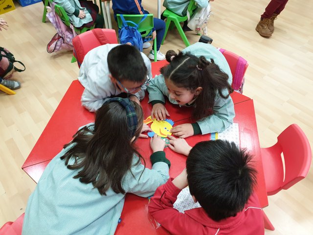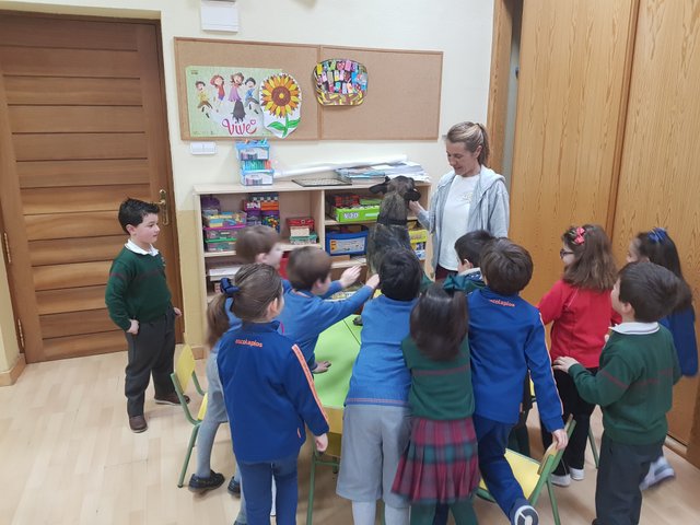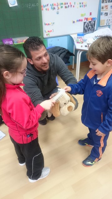 Esta semana, los alumnos de 5 años junto a la”perrita” Sim, una pastor Belga, han podido conocer de primera mano los cuidados necesarios para poder tener una mascota en casa: horas de comidas, paseos, momento de juego, higiene…