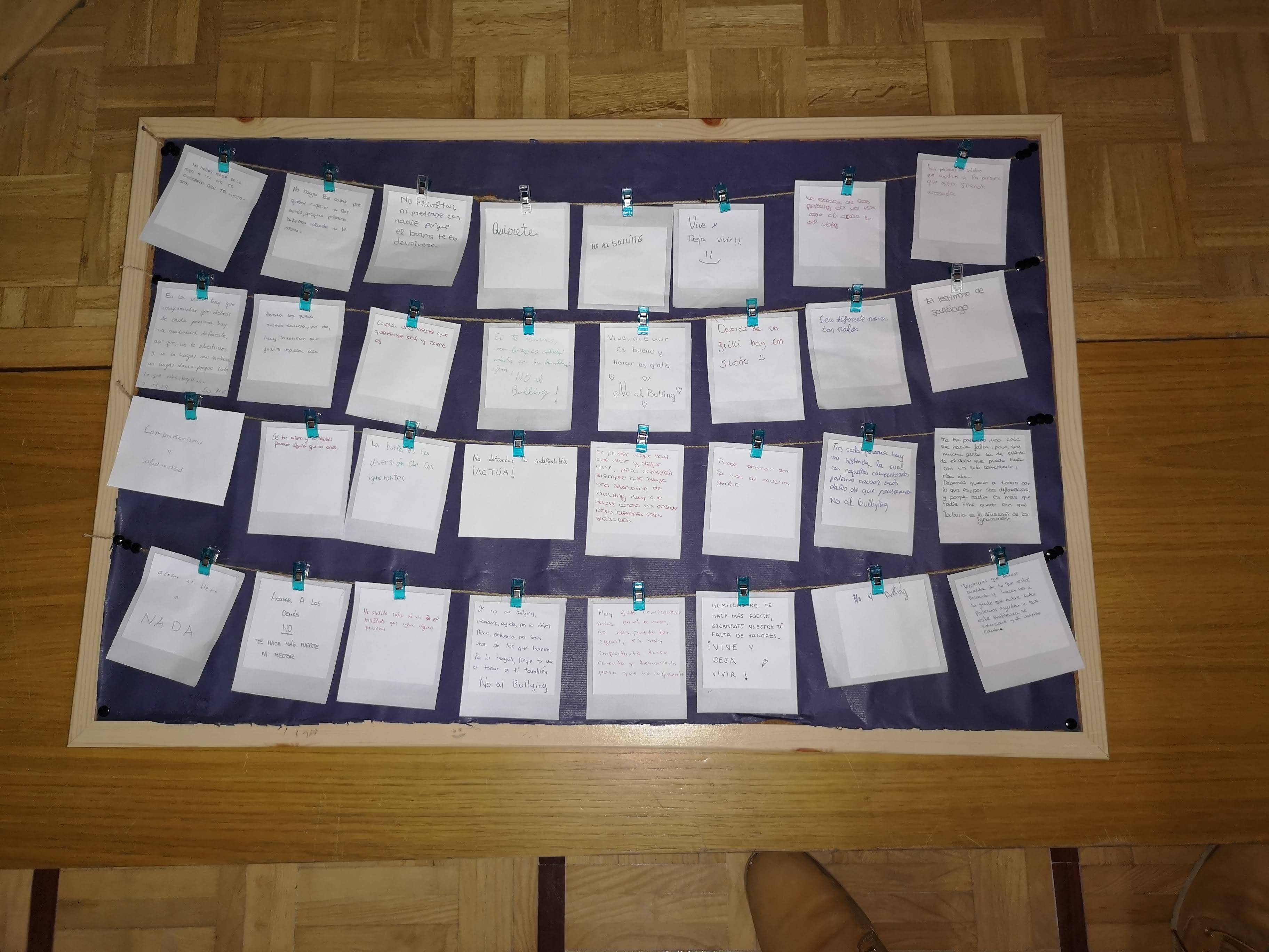 “No te quedes callado”, “Actúa” y “Estamos contigo” son algunos de los mensajes que nuestros alumnos han querido plasmar con sus mensajes para hacer más vivo un sentimiento de ayuda y consejo.