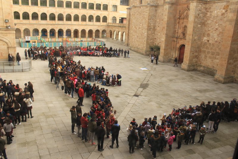 Toda la comunidad educativa se ha reunido en el Patio de Granito porque creemos en la educación como motor para transformar la vida y conseguir un futuro mejor.