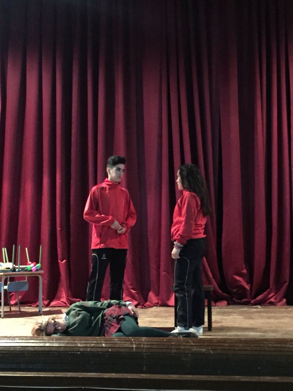 El grupo Divertimento Teatro formado por alumnos de 4º ESO de aplicadas y algunos de 4ºA y 4ºB están ensayando la obra Violencia para estrenarla mañana, miércoles, en el Festival Provincial de Teatro Escolar.