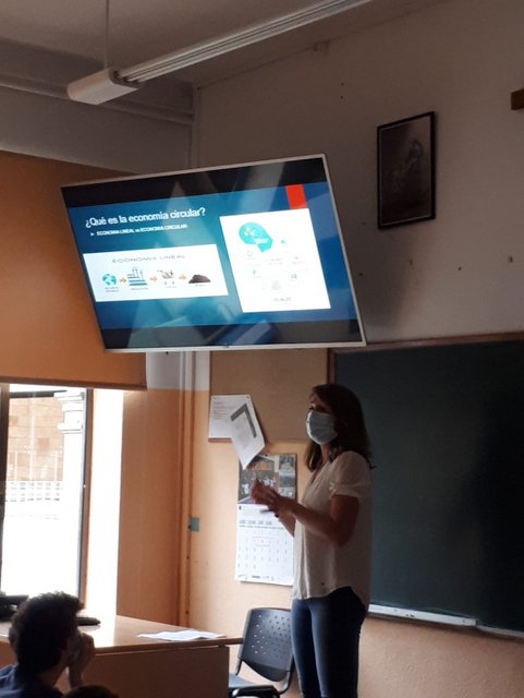 María presentó el tema, generó debate y nos ofreció ejemplos de cómo en el campo se lleva implementando la economía circular desde hace siglos, cómo apoya el Estado esta iniciativa, principalmente mediante normativas, y cómo se lleva a la práctica en el caso concreto de la empresa de la familia.