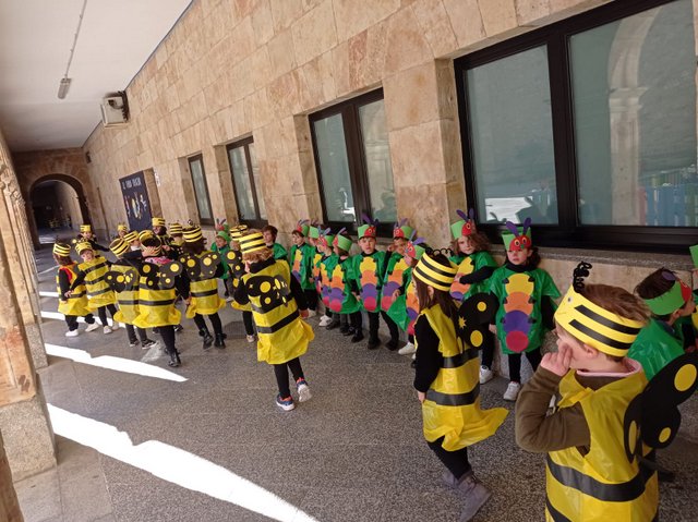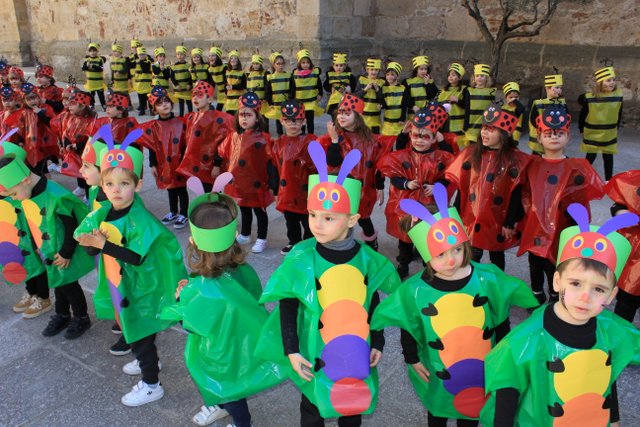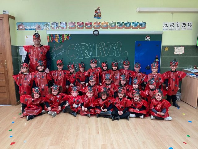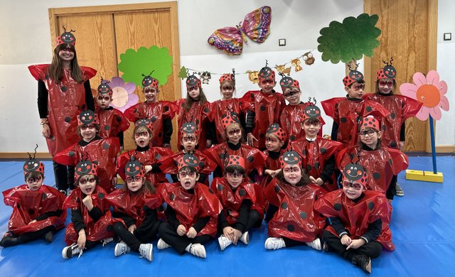 Llegaron los carnavales al Colegio Calasanz y los niños/as de 2º ciclo de infantil nos hemos disfrazado de insectos (orugas, mariquitas y abejitas), temática que va acorde con el proyecto que estamos realizando “Cuidamos nuestros bosques”.