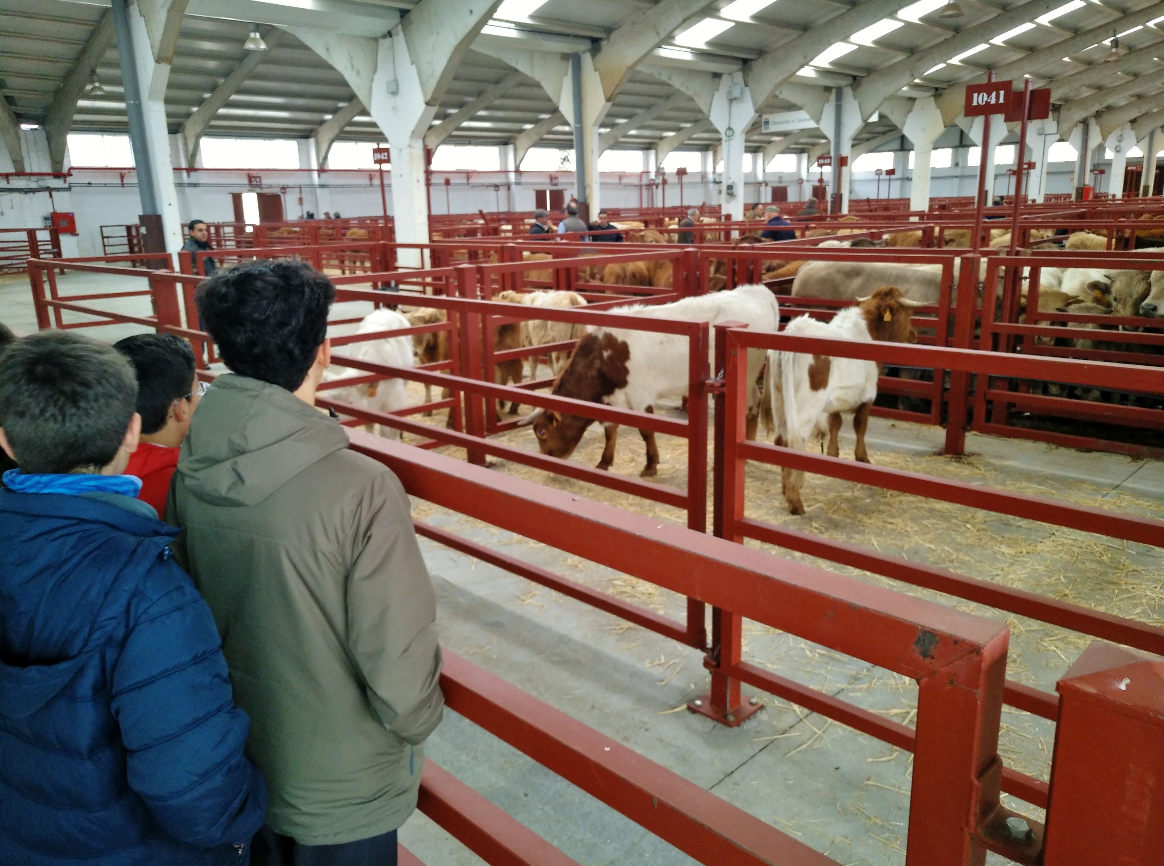 El mercado presencial de ganados se celebra todos los lunes y Salamanca es la provincia de España con una mayor cabaña vacuna. Por eso, la mayor parte del ganado que pudieron observar fueron las distintas razas vacunas con las que se negocia en el recinto. Llamaron la atención las terneras moruchas, típicas de Salamanca, y las sayaguesas, por sus largos cuernos. Tras recorrer las naves de vacuno se trasladaron a las cuadras para ver los caballos.