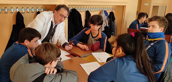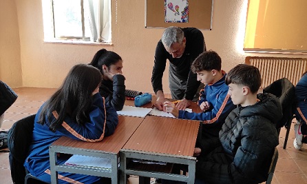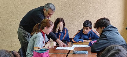 En su recorrido por las aulas, incluyó también un minirecital de poesía, con lectura de versos tomados de obras distintas. La segunda parte de la clase se dedicó al taller y los alumnos, organizados en grupos, analizaron varios poemas preguntando directamente al autor cuales fueron las motivaciones que le llevaron a escribirlos y por qué recurrió a ese tipo de versos, palabras, metáforas, etc.