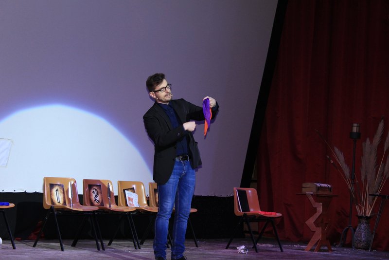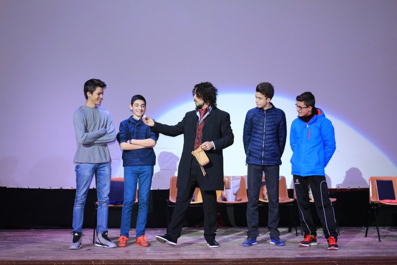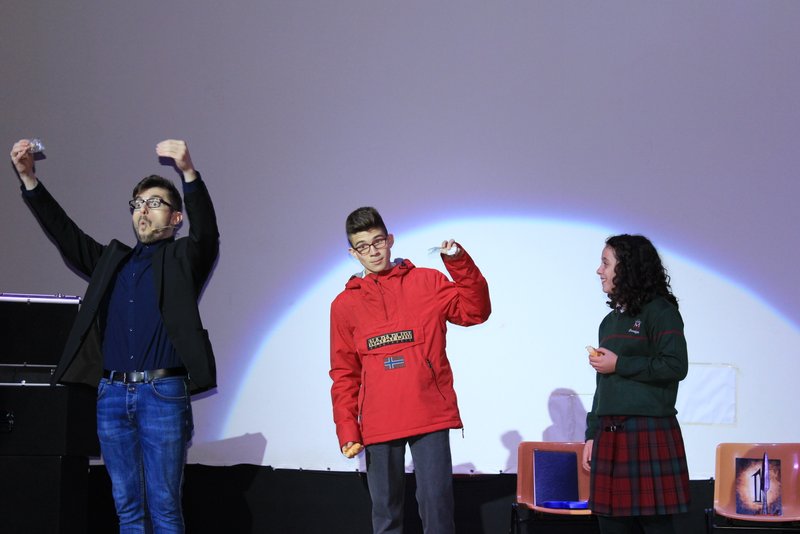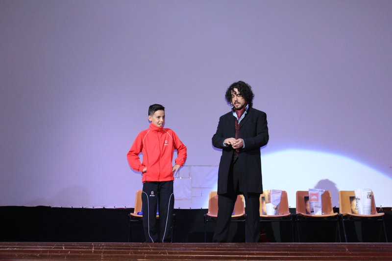 Asombrados y estupefactos se han quedado muchos de nuestro alumnos al ver, y algunos de ellos participar, en los diferentes espectáculos que han realizado Max Verdié y Toni Rivero en el teatro del colegio.