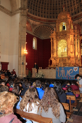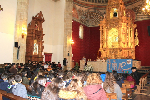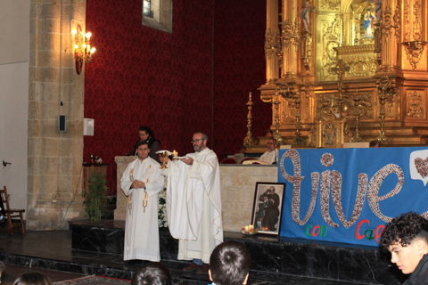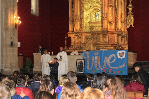 A los pies del altar nos acompañaban el lema de este curso Vive, formado por las fotografías de todos los alumnos del colegio, desde Centro Infantil hasta el ciclo de Formación Profesional.