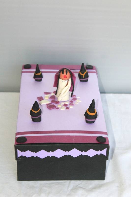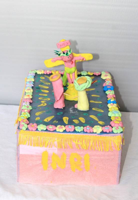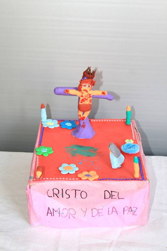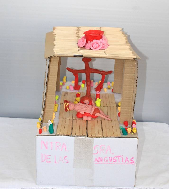 Cada grupo ha construido un paso de Semana Santa según la advocación elegida. Los materiales para llevarlo a cabo son cartón y plastilina para alumnos de 1º, 2º y 3º ESO; pintura en lienzo o cartón rígido para alumnos de 4º ESO y Bachillerato.