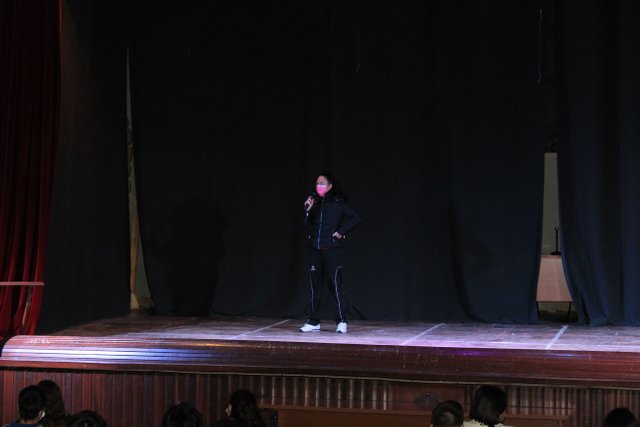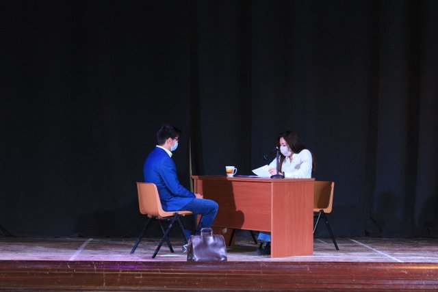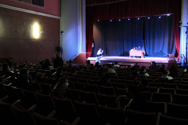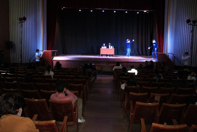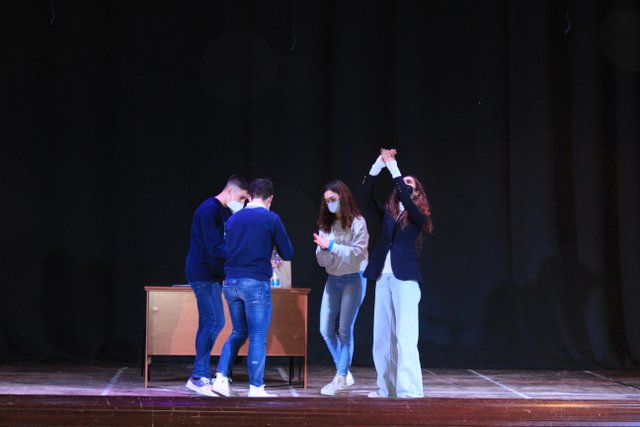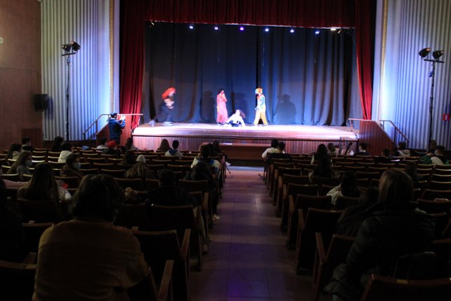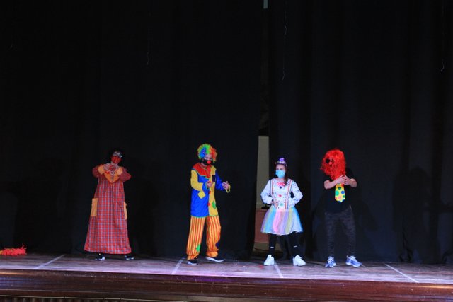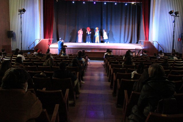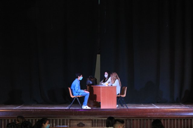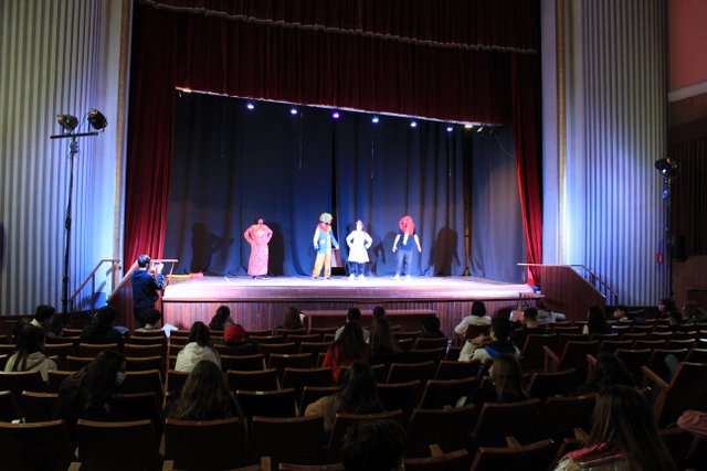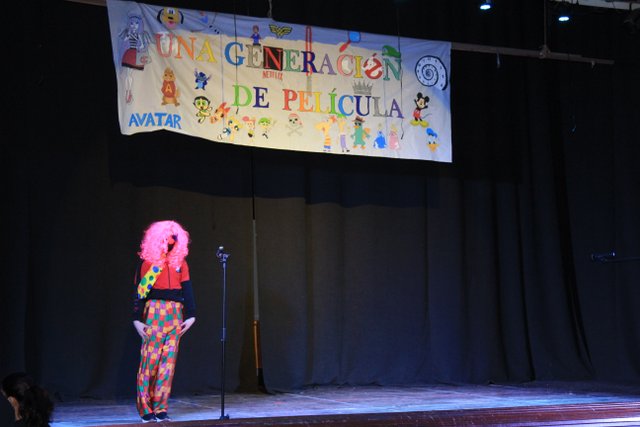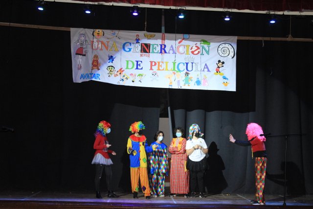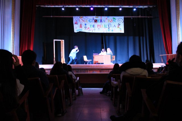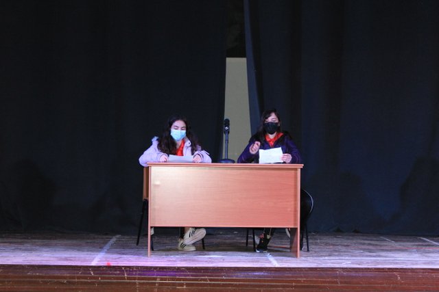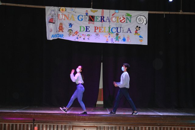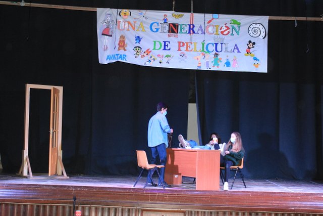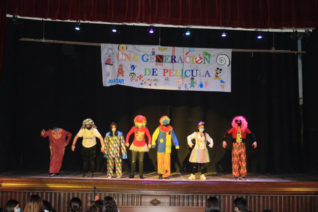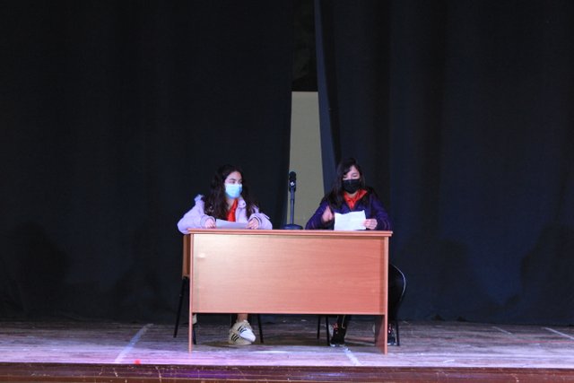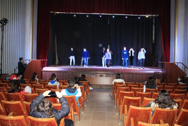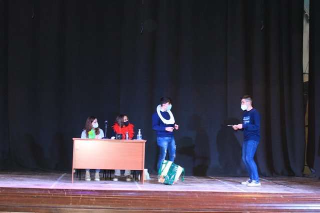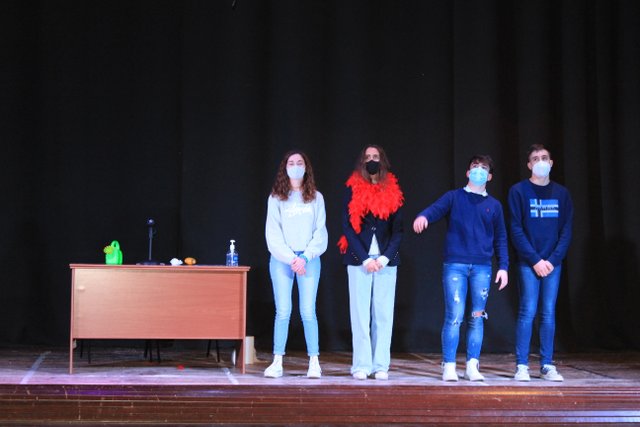 Los presentadores de las “Noticias Calasanz” subían al escenario del teatro para mostrar la actualidad más reciente del colegio. Entre bailes, teatros, chistes y sketch han amenizado la mañana a todos los alumnos del colegio.