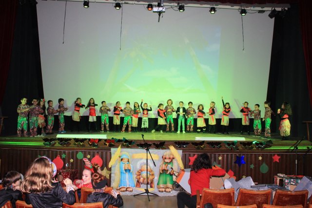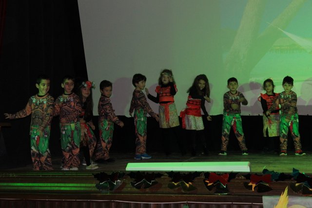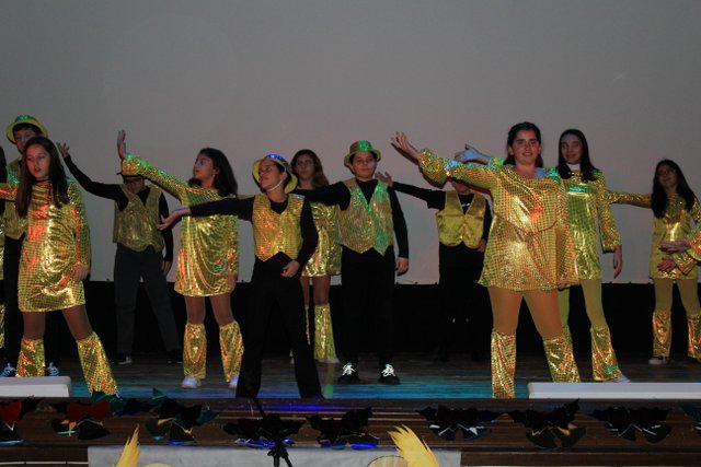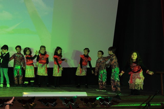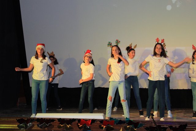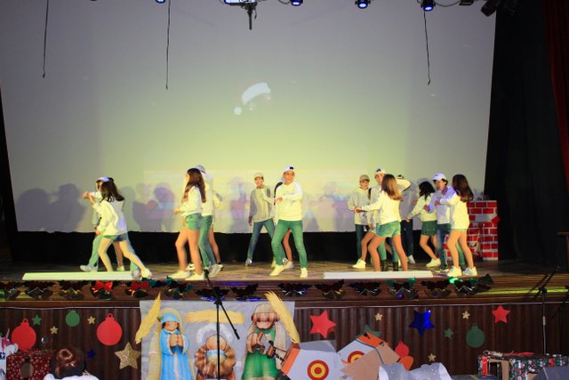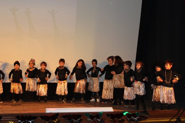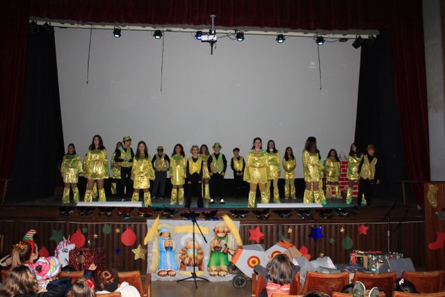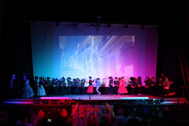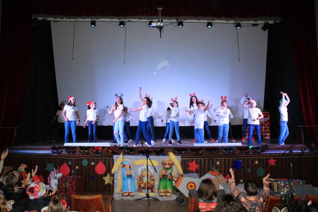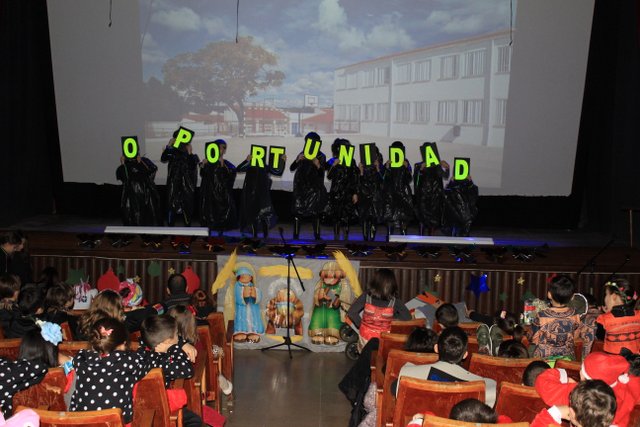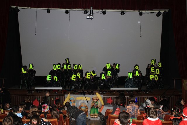 Los niños y niñas de Infantil y primaria llenan de ritmo y alegría el teatro del colegio.